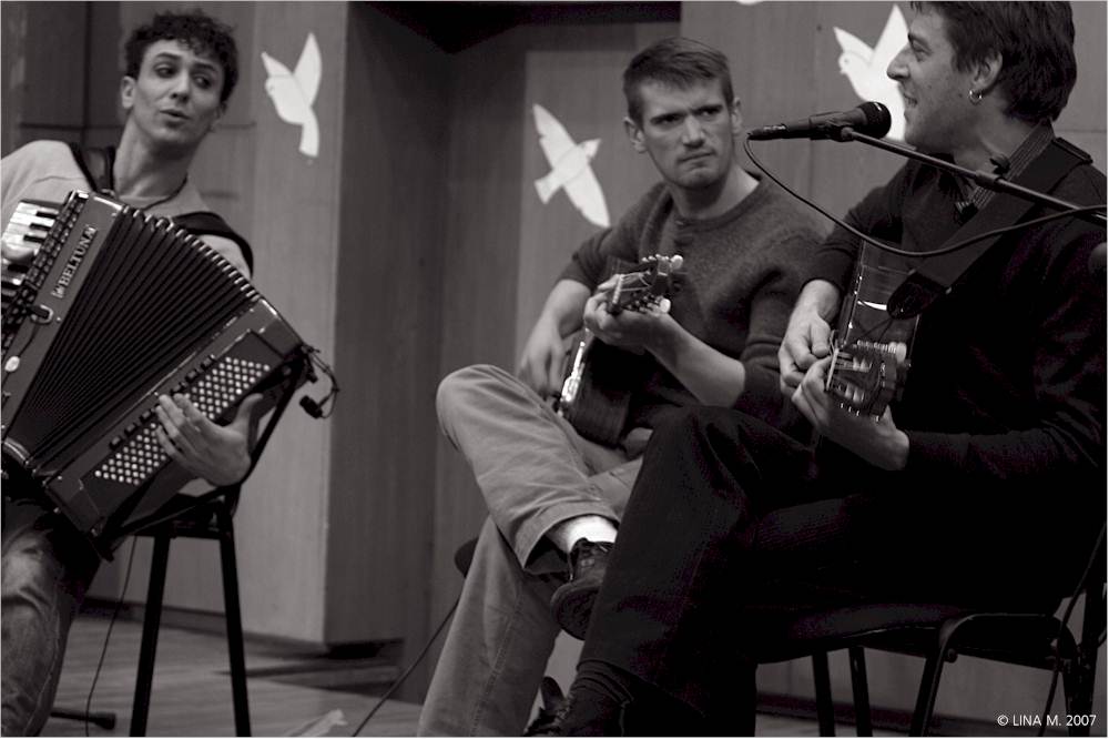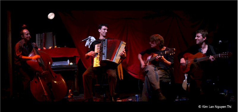 Johann Riche, à l'accordéon; Pascal Muller et Arnaud Soidet, à la guitare; Nicolas Pautras, à la contrebasse: le décor est planté.